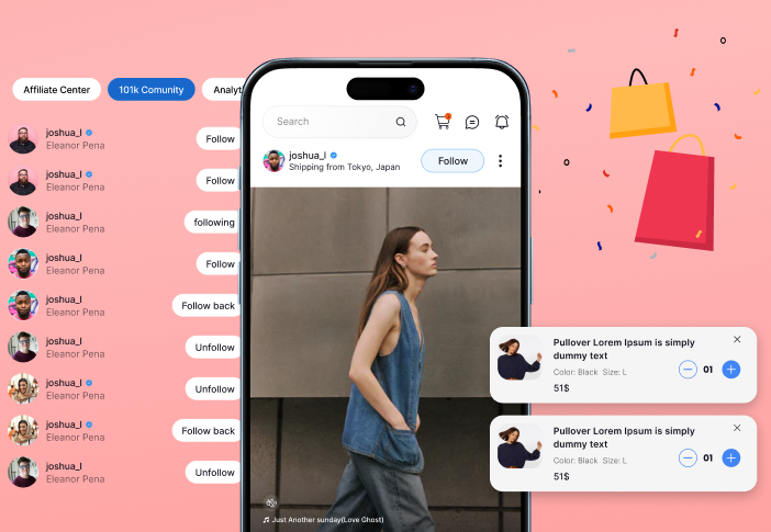 Users can explore products through interactive posts, creator content, recommendations, and community-driven engagement, making shopping feel more organic and personalized.
