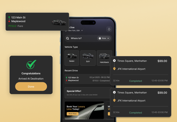 Step into a world of comfort, style, and convenience. With just a few taps, you can reserve a premium car, choose your preferred driver, and enjoy a seamless, first-class experience. Don’t wait—turn every journey into a luxurious ride that matches your lifestyle.