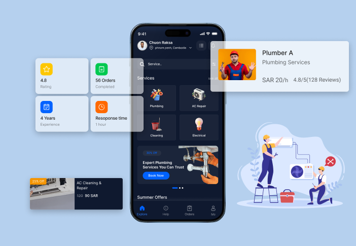 Customers can browse categories, compare providers, check availability, and book appointments in just a few clicks.