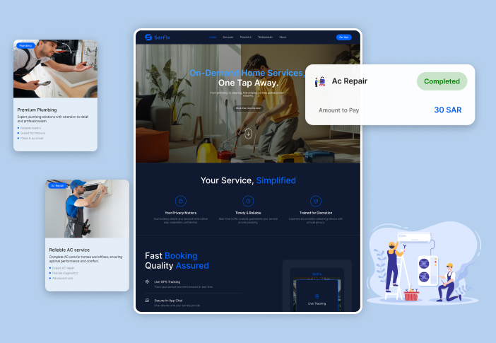 Serfix’s web platforms ensure seamless access to home services, allowing users to browse, book, and manage appointments effortlessly, enhancing engagement and convenience across all devices.